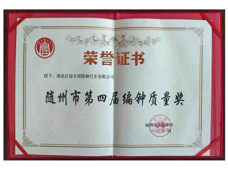 湖北江南專用特種汽車有限公司經(jīng)過申報(bào)推薦、資格審查、資料評(píng)審、現(xiàn)場評(píng)審、問詢答辯、綜合評(píng)價(jià)、審議公示等程序,被授予“隨州市第四屆編鐘質(zhì)量獎(jiǎng)”。